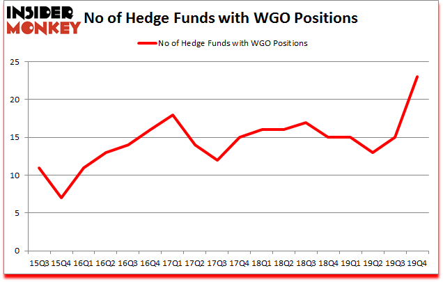 At the end of the fourth quarter, a total of 23 of the hedge funds tracked by Insider Monkey were long this stock, a change of 53% from one quarter earlier. By comparison, 15 hedge funds held shares or bullish call options in WGO a year ago. With hedge funds’ sentiment swirling, there exists an “upper tier” of noteworthy hedge fund managers who were boosting their stakes significantly (or already accumulated large positions).