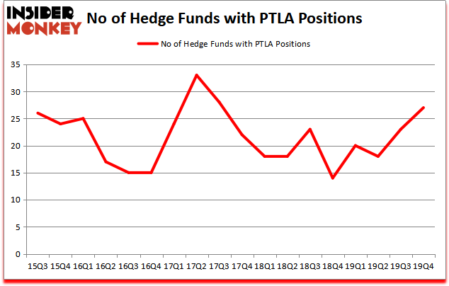 Heading into the first quarter of 2020, a total of 27 of the hedge funds tracked by Insider Monkey were bullish on this stock, a change of 17% from one quarter earlier. Below, you can check out the change in hedge fund sentiment towards PTLA over the last 18 quarters. With hedge funds’ sentiment swirling, there exists an “upper tier” of noteworthy hedge fund managers who were increasing their stakes considerably (or already accumulated large positions).