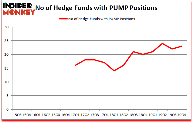 Heading into the first quarter of 2020, a total of 23 of the hedge funds tracked by Insider Monkey were long this stock, a change of 5% from the previous quarter. On the other hand, there were a total of 20 hedge funds with a bullish position in PUMP a year ago. With the smart money’s capital changing hands, there exists an “upper tier” of notable hedge fund managers who were adding to their holdings significantly (or already accumulated large positions).