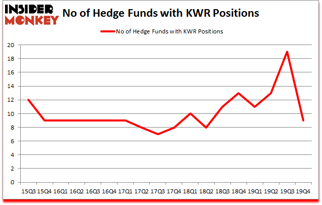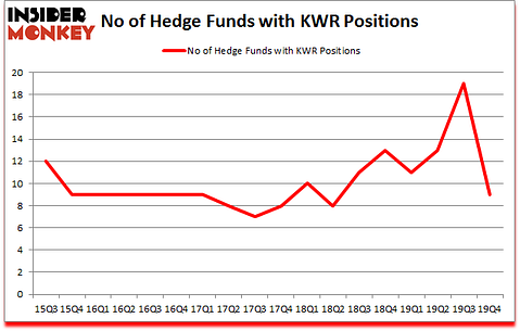Quaker Chemical Corp (NYSE:KWR) investors should pay attention to a decrease in hedge fund sentiment in recent months. KWR was in 9 hedge funds’ portfolios at the end of December. There were 19 hedge funds in our database with KWR positions at the end of the previous quarter. Our calculations also showed that KWR isn’t among the 30 most popular stocks among hedge funds (click for Q4 rankings and see the video at the end of this article for Q3 rankings).