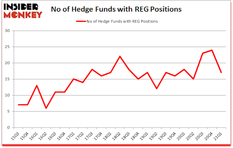Regency Centers Corp (NASDAQ:REG) was in 17 hedge funds’ portfolios at the end of the first quarter of 2021. The all time high for this statistic is 24. REG investors should pay attention to a decrease in hedge fund interest of late. There were 24 hedge funds in our database with REG positions at the end of the fourth quarter. Our calculations also showed that REG isn’t among the 30 most popular stocks among hedge funds (click for Q1 rankings).