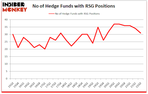 Republic Services, Inc. (NYSE:RSG) has experienced a decrease in hedge fund interest lately. Republic Services, Inc. (NYSE:RSG) was in 31 hedge funds’ portfolios at the end of September. The all time high for this statistic is 37. There were 34 hedge funds in our database with RSG holdings at the end of June. Our calculations also showed that RSG isn’t among the 30 most popular stocks among hedge funds (click for Q3 rankings).