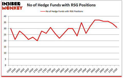 Republic Services, Inc. (NYSE:RSG) has experienced a decrease in hedge fund interest lately. Republic Services, Inc. (NYSE:RSG) was in 31 hedge funds’ portfolios at the end of September. The all time high for this statistic is 37. There were 34 hedge funds in our database with RSG holdings at the end of June. Our calculations also showed that RSG isn’t among the 30 most popular stocks among hedge funds (click for Q3 rankings).