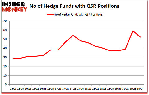 Is Restaurant Brands International Inc (NYSE:QSR) a buy here? Money managers are becoming less confident. The number of bullish hedge fund positions shrunk by 7 recently. Our calculations also showed that QSR isn’t among the 30 most popular stocks among hedge funds (click for Q4 rankings and see the video at the end of this article for Q3 rankings). QSR was in 52 hedge funds’ portfolios at the end of December. There were 59 hedge funds in our database with QSR holdings at the end of the previous quarter.
