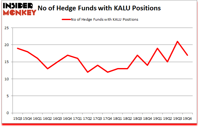 Heading into the first quarter of 2020, a total of 17 of the hedge funds tracked by Insider Monkey were long this stock, a change of -19% from the previous quarter. On the other hand, there were a total of 14 hedge funds with a bullish position in KALU a year ago. So, let’s check out which hedge funds were among the top holders of the stock and which hedge funds were making big moves.