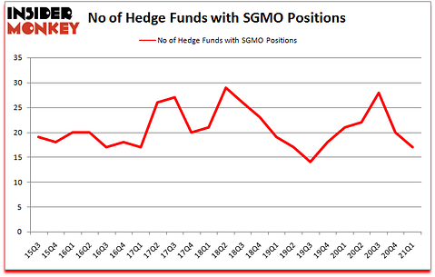 Heading into the second quarter of 2021, a total of 17 of the hedge funds tracked by Insider Monkey were bullish on this stock, a change of -15% from one quarter earlier. The graph below displays the number of hedge funds with bullish position in SGMO over the last 23 quarters. So, let’s review which hedge funds were among the top holders of the stock and which hedge funds were making big moves.