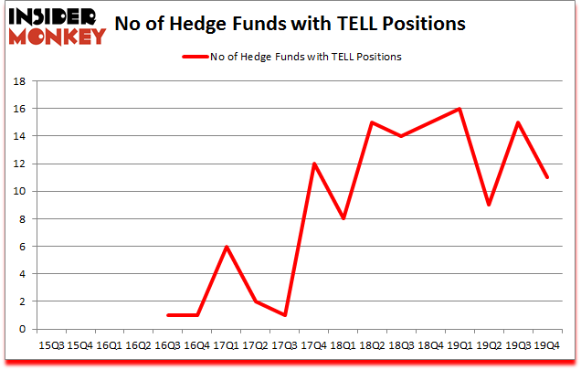 Heading into the first quarter of 2020, a total of 11 of the hedge funds tracked by Insider Monkey were long this stock, a change of -27% from one quarter earlier. By comparison, 15 hedge funds held shares or bullish call options in TELL a year ago. So, let’s find out which hedge funds were among the top holders of the stock and which hedge funds were making big moves.
