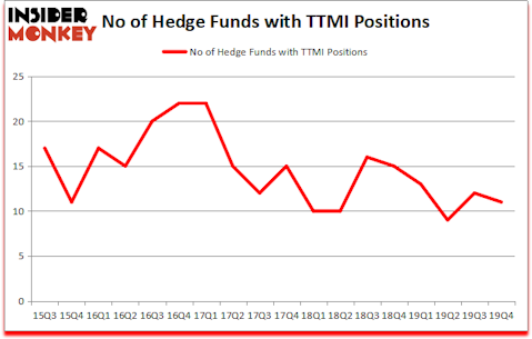 TTM Technologies, Inc. (NASDAQ:TTMI) was in 11 hedge funds’ portfolios at the end of December. TTMI shareholders have witnessed a decrease in enthusiasm from smart money lately. There were 12 hedge funds in our database with TTMI holdings at the end of the previous quarter. Our calculations also showed that TTMI isn’t among the 30 most popular stocks among hedge funds (click for Q4 rankings and see the video at the end of this article for Q3 rankings).