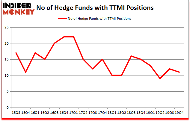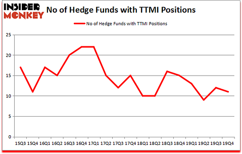 TTM Technologies, Inc. (NASDAQ:TTMI) was in 11 hedge funds’ portfolios at the end of December. TTMI shareholders have witnessed a decrease in enthusiasm from smart money lately. There were 12 hedge funds in our database with TTMI holdings at the end of the previous quarter. Our calculations also showed that TTMI isn’t among the 30 most popular stocks among hedge funds (click for Q4 rankings and see the video at the end of this article for Q3 rankings).