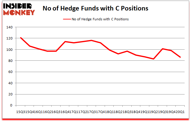 Citigroup Inc. (NYSE:C) has seen a decrease in enthusiasm from smart money recently. C was in 86 hedge funds’ portfolios at the end of the first quarter of 2020. There were 98 hedge funds in our database with C holdings at the end of the previous quarter. Our calculations also showed that C isn’t among the 30 most popular stocks among hedge funds (click for Q1 rankings and see the video for a quick look at the top 5 stocks).