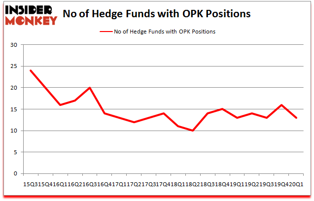 Opko Health Inc. (NASDAQ:OPK) was in 13 hedge funds’ portfolios at the end of the first quarter of 2020. OPK shareholders have witnessed a decrease in hedge fund interest recently. There were 16 hedge funds in our database with OPK positions at the end of the previous quarter. Our calculations also showed that OPK isn’t among the 30 most popular stocks among hedge funds (click for Q1 rankings and see the video for a quick look at the top 5 stocks).