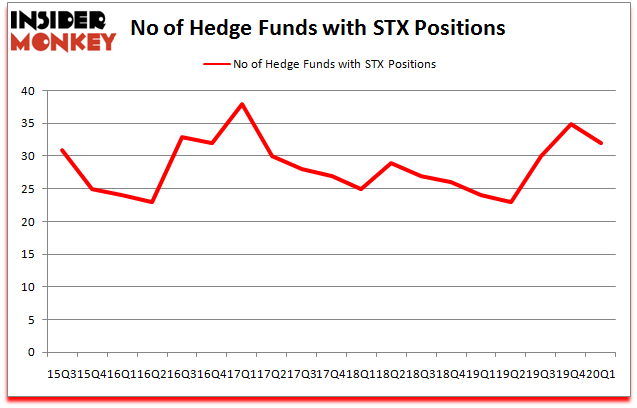 Seagate Technology plc (NASDAQ:STX) investors should pay attention to a decrease in hedge fund interest lately. STX was in 32 hedge funds’ portfolios at the end of March. There were 35 hedge funds in our database with STX holdings at the end of the previous quarter. Our calculations also showed that STX isn’t among the 30 most popular stocks among hedge funds (click for Q1 rankings and see the video for a quick look at the top 5 stocks).