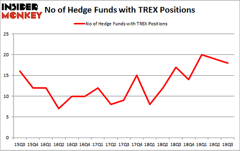 Trex Company, Inc. (NYSE:TREX) shareholders have witnessed a decrease in support from the world’s most elite money managers in recent months. Our calculations also showed that TREX isn’t among the 30 most popular stocks among hedge funds (click for Q3 rankings and see the video below for Q2 rankings).