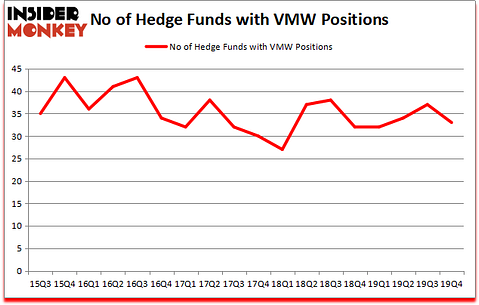 VMware, Inc. (NYSE:VMW) was in 33 hedge funds’ portfolios at the end of December. VMW has experienced a decrease in hedge fund sentiment recently. There were 37 hedge funds in our database with VMW holdings at the end of the previous quarter. Our calculations also showed that VMW isn’t among the 30 most popular stocks among hedge funds (click for Q4 rankings and see the video below for Q3 rankings).