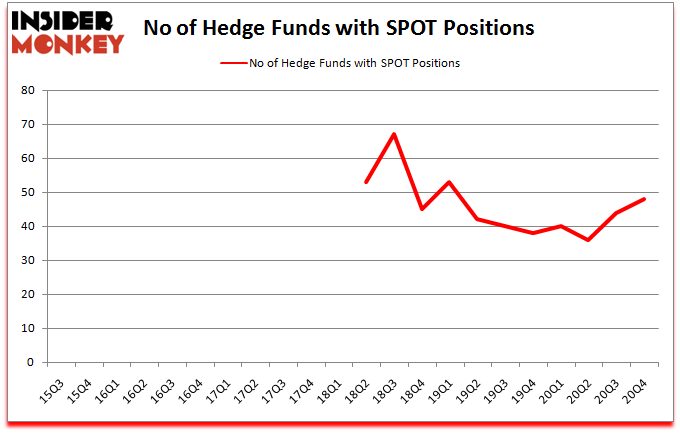 Spotify Technology S.A. (NYSE:SPOT) shareholders have witnessed an increase in enthusiasm from smart money recently. Spotify Technology S.A. (NYSE:SPOT) was in 48 hedge funds’ portfolios at the end of December. The all time high for this statistic is 67. There were 44 hedge funds in our database with SPOT holdings at the end of September. Our calculations also showed that SPOT isn’t among the 30 most popular stocks among hedge funds (click for Q4 rankings).