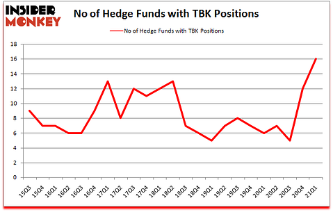 At first quarter’s end, a total of 16 of the hedge funds tracked by Insider Monkey were long this stock, a change of 33% from the previous quarter. On the other hand, there were a total of 6 hedge funds with a bullish position in TBK a year ago. With the smart money’s positions undergoing their usual ebb and flow, there exists a few notable hedge fund managers who were adding to their stakes considerably (or already accumulated large positions).