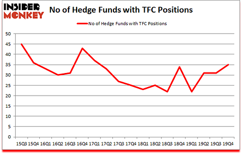 At the end of the fourth quarter, a total of 35 of the hedge funds tracked by Insider Monkey held long positions in this stock, a change of 13% from the previous quarter. Below, you can check out the change in hedge fund sentiment towards TFC over the last 18 quarters. With hedgies’ sentiment swirling, there exists an “upper tier” of key hedge fund managers who were adding to their holdings substantially (or already accumulated large positions).