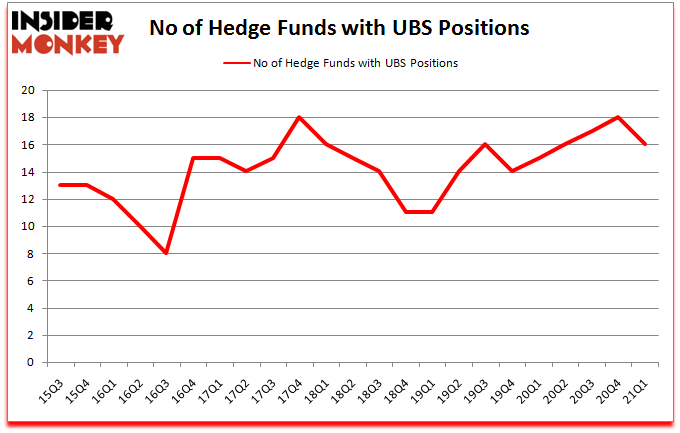 Is UBS Group AG (NYSE:UBS) a bargain? Hedge funds were taking a bearish view. The number of bullish hedge fund positions were cut by 2 recently. UBS Group AG (NYSE:UBS) was in 16 hedge funds’ portfolios at the end of the first quarter of 2021. The all time high for this statistic is 18. Our calculations also showed that UBS isn’t among the 30 most popular stocks among hedge funds (click for Q1 rankings).