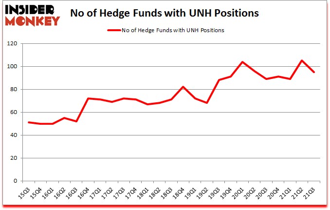 UnitedHealth Group Inc. (NYSE:UNH) investors should be aware of a decrease in enthusiasm from smart money of late. UnitedHealth Group Inc. (NYSE:UNH) was in 95 hedge funds’ portfolios at the end of the third quarter of 2021. The all time high for this statistic is 105. Our calculations also showed that UNH ranked #22 among the 30 most popular stocks among hedge funds (click for Q3 rankings).