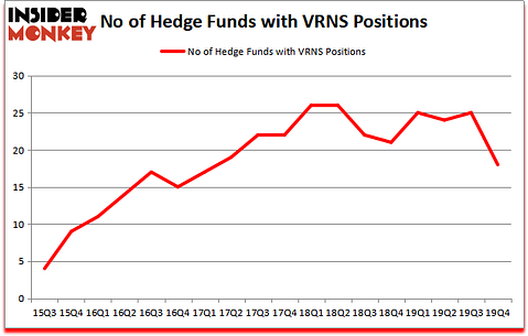 Heading into the first quarter of 2020, a total of 18 of the hedge funds tracked by Insider Monkey were bullish on this stock, a change of -28% from one quarter earlier. Below, you can check out the change in hedge fund sentiment towards VRNS over the last 18 quarters. So, let’s examine which hedge funds were among the top holders of the stock and which hedge funds were making big moves.