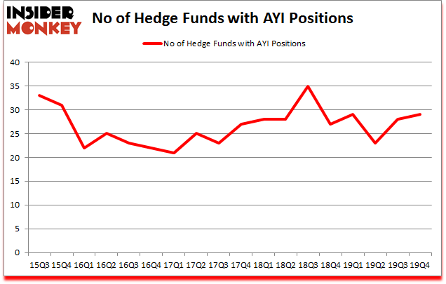 At the end of the fourth quarter, a total of 29 of the hedge funds tracked by Insider Monkey were long this stock, a change of 4% from the third quarter of 2019. The graph below displays the number of hedge funds with bullish position in AYI over the last 18 quarters. So, let’s examine which hedge funds were among the top holders of the stock and which hedge funds were making big moves.