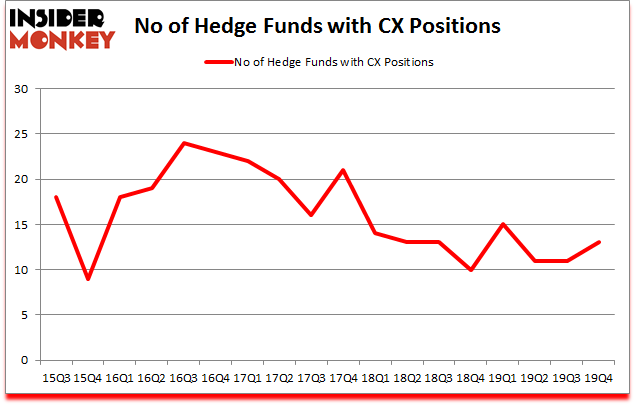 At the end of the fourth quarter, a total of 13 of the hedge funds tracked by Insider Monkey held long positions in this stock, a change of 18% from the previous quarter. The graph below displays the number of hedge funds with bullish position in CX over the last 18 quarters. With the smart money’s capital changing hands, there exists a select group of notable hedge fund managers who were upping their stakes meaningfully (or already accumulated large positions).
