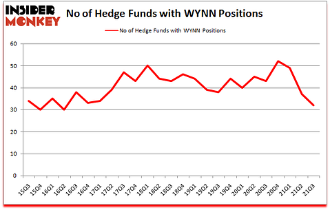 Wynn Resorts, Limited (NASDAQ:WYNN) was in 32 hedge funds’ portfolios at the end of the third quarter of 2021. The all time high for this statistic is 52. WYNN investors should be aware of a decrease in hedge fund sentiment in recent months. There were 37 hedge funds in our database with WYNN positions at the end of the second quarter. Our calculations also showed that WYNN isn’t among the 30 most popular stocks among hedge funds (click for Q3 rankings).