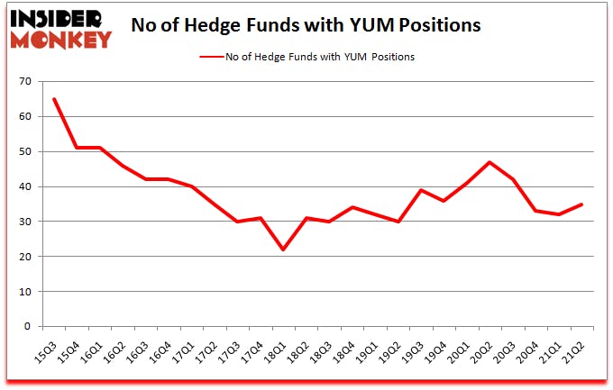 Yum! Brands, Inc. (NYSE:YUM) shareholders have witnessed an increase in hedge fund sentiment lately. Yum! Brands, Inc. (NYSE:YUM) was in 35 hedge funds’ portfolios at the end of June. The all time high for this statistic is 65. There were 32 hedge funds in our database with YUM positions at the end of the first quarter. Our calculations also showed that YUM isn’t among the 30 most popular stocks among hedge funds (click for Q2 rankings).