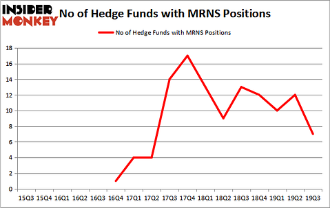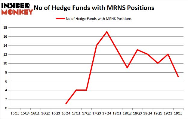 At Q3’s end, a total of 7 of the hedge funds tracked by Insider Monkey were bullish on this stock, a change of -42% from one quarter earlier. The graph below displays the number of hedge funds with bullish position in MRNS over the last 17 quarters. With hedgies’ sentiment swirling, there exists a select group of key hedge fund managers who were boosting their holdings significantly (or already accumulated large positions).