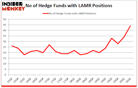 Is Lamar Advertising Company (REIT) (NASDAQ:LAMR) a healthy stock for your portfolio? Prominent investors were taking an optimistic view. The number of bullish hedge fund bets went up by 10 lately. Lamar Advertising Company (REIT) (NASDAQ:LAMR) was in 44 hedge funds’ portfolios at the end of the second quarter of 2020. The all time high for this statistics is 34. This means the bullish number of hedge fund positions in this stock currently sits at its all time high. Our calculations also showed that LAMR isn’t among the 30 most popular stocks among hedge funds (click for Q2 rankings and see the video for a quick look at the top 5 stocks). There were 34 hedge funds in our database with LAMR holdings at the end of March.