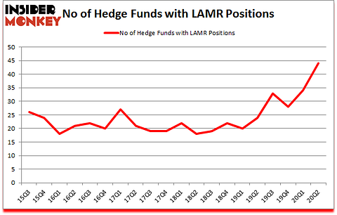 Is Lamar Advertising Company (REIT) (NASDAQ:LAMR) a healthy stock for your portfolio? Prominent investors were taking an optimistic view. The number of bullish hedge fund bets went up by 10 lately. Lamar Advertising Company (REIT) (NASDAQ:LAMR) was in 44 hedge funds’ portfolios at the end of the second quarter of 2020. The all time high for this statistics is 34. This means the bullish number of hedge fund positions in this stock currently sits at its all time high. Our calculations also showed that LAMR isn’t among the 30 most popular stocks among hedge funds (click for Q2 rankings and see the video for a quick look at the top 5 stocks). There were 34 hedge funds in our database with LAMR holdings at the end of March.