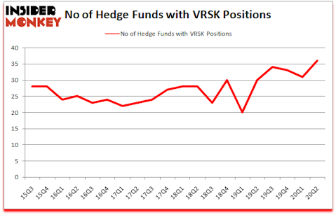 Is Verisk Analytics, Inc. (NASDAQ:VRSK) ready to rally soon? Money managers were buying. The number of long hedge fund positions improved by 5 in recent months. Verisk Analytics, Inc. (NASDAQ:VRSK) was in 36 hedge funds’ portfolios at the end of the second quarter of 2020. The all time high for this statistics is 34. This means the bullish number of hedge fund positions in this stock currently sits at its all time high. Our calculations also showed that VRSK isn’t among the 30 most popular stocks among hedge funds (click for Q2 rankings and see the video for a quick look at the top 5 stocks). There were 31 hedge funds in our database with VRSK holdings at the end of March.