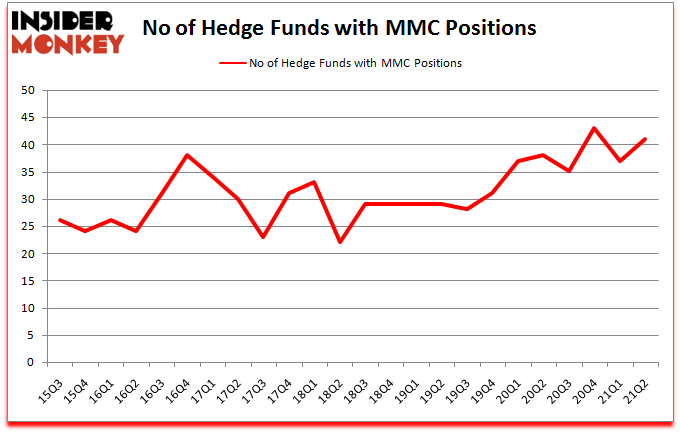 Marsh & McLennan Companies, Inc. (NYSE:MMC) has experienced an increase in support from the world’s most elite money managers of late. Marsh & McLennan Companies, Inc. (NYSE:MMC) was in 41 hedge funds’ portfolios at the end of the second quarter of 2021. The all time high for this statistic is 43. There were 37 hedge funds in our database with MMC positions at the end of the first quarter. Our calculations also showed that MMC isn’t among the 30 most popular stocks among hedge funds (click for Q2 rankings).