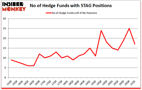 Stag Industrial Inc (NYSE:STAG) has experienced a decrease in support from the world’s most elite money managers lately. Stag Industrial Inc (NYSE:STAG) was in 17 hedge funds’ portfolios at the end of the first quarter of 2021. The all time high for this statistic is 25. Our calculations also showed that STAG isn’t among the 30 most popular stocks among hedge funds (click for Q1 rankings).
