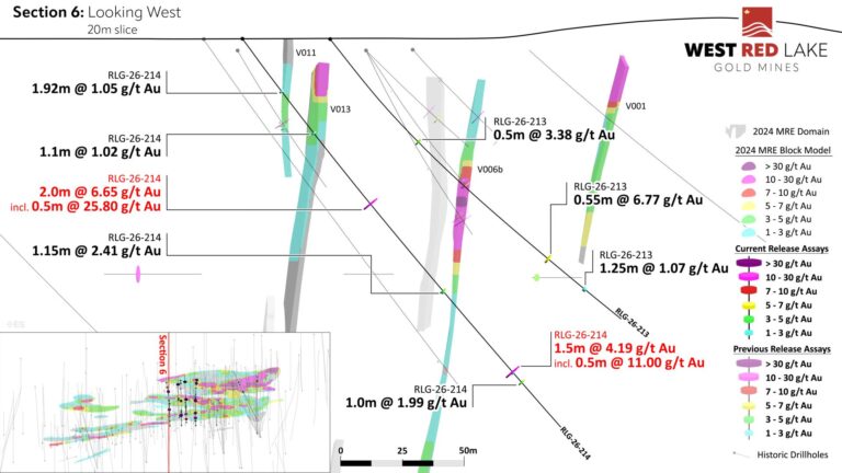 Will Robinson, Vice President of Exploration, stated, “We are very encouraged by the results received to date from the Rowan infill drilling program. Bringing Veins 006b and 013 into consideration for PFS mine design has the potential to materially change the way we view the Rowan deposit, and it’s expected contribution to a future hub and spoke production model in Red Lake. The 2025 PEA envisioned Rowan as a small footprint, underground extraction scenario delivering high-margin rock with an average diluted grade of 8 grams per tonne gold at the rate of 400 tonnes per day. Incorporating Veins 006b and 013 into the production profile has the potential to materially increase the daily mined tonnage from Rowan, which could significantly increase the economics of the project. Though further engineering work is required to fully substantiate this scenario our team is excited to begin updating the geologic model, mineral resource estimate and mine design for the combined Madsen-Rowan PFS slated for Q3 2026. Additionally, we are seeing favorable intercepts along strike from currently modeled Veins 001 and 003, which were both included in the 2025 PEA mine plan – this speaks to the excellent opportunity for continued resource growth at Rowan through additional expansion drilling.”