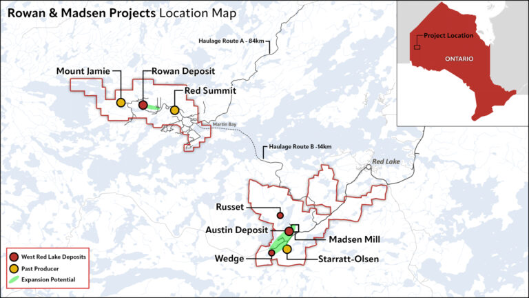 West Red Lake Gold Mines Ltd. is a gold miner development company that is publicly traded and focused on advancing and developing its flagship Madsen Gold Mine and the associated 47 km2 highly prospective land package in the Red Lake district of Ontario. The highly productive Red Lake Gold District of Northwest Ontario, Canada has yielded over 30 million ounces of gold from high-grade zones and hosts some of the world’s richest gold deposits. WRLG also holds the wholly owned Rowan Property in Red Lake, with an expansive property position covering 31 km2 including three past producing gold mines – Rowan, Mount Jamie, and Red Summit.