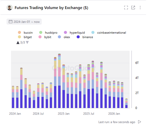 Handling massive institutional flow demands an entirely different scale of market infrastructure. CryptoQuant data shows that perpetual futures now dictate market momentum, generating $3.5 trillion in monthly volume. Institutions executing multi-million dollar hedging maneuvers require massive liquidity pools to avoid severe market impact costs.