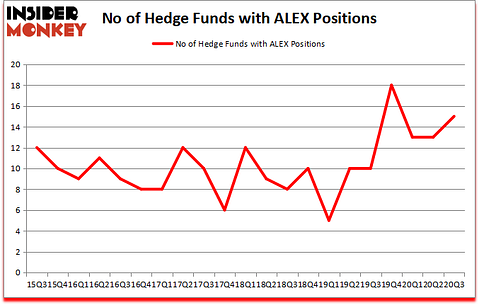 At the end of September, a total of 15 of the hedge funds tracked by Insider Monkey held long positions in this stock, a change of 15% from one quarter earlier. On the other hand, there were a total of 10 hedge funds with a bullish position in ALEX a year ago. With hedge funds’ positions undergoing their usual ebb and flow, there exists an “upper tier” of noteworthy hedge fund managers who were boosting their stakes considerably (or already accumulated large positions).