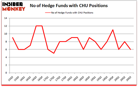 We view hedge fund activity in the stock unfavorable, but in this case there was only a single hedge fund selling its entire position: Paloma Partners. One hedge fund selling its entire position doesn’t always imply a bearish intent. Theoretically a hedge fund may decide to sell a promising position in order to invest the proceeds in a more promising idea. However, we don’t think this is the case in this case because none of the 750+ hedge funds tracked by Insider Monkey identified CHU as a viable investment and initiated a position in the stock.