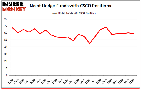 Heading into the second quarter of 2021, a total of 59 of the hedge funds tracked by Insider Monkey were bullish on this stock, a change of -2% from the previous quarter. Below, you can check out the change in hedge fund sentiment towards CSCO over the last 23 quarters. So, let’s review which hedge funds were among the top holders of the stock and which hedge funds were making big moves.