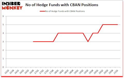 At first quarter’s end, a total of 5 of the hedge funds tracked by Insider Monkey held long positions in this stock, a change of 0% from the fourth quarter of 2020. By comparison, 4 hedge funds held shares or bullish call options in CBAN a year ago. With hedge funds’ capital changing hands, there exists a few noteworthy hedge fund managers who were upping their stakes substantially (or already accumulated large positions).