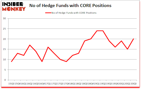 At the end of September, a total of 20 of the hedge funds tracked by Insider Monkey were long this stock, a change of 33% from one quarter earlier. The graph below displays the number of hedge funds with bullish position in CORE over the last 21 quarters. With hedgies’ positions undergoing their usual ebb and flow, there exists a select group of notable hedge fund managers who were adding to their holdings considerably (or already accumulated large positions).