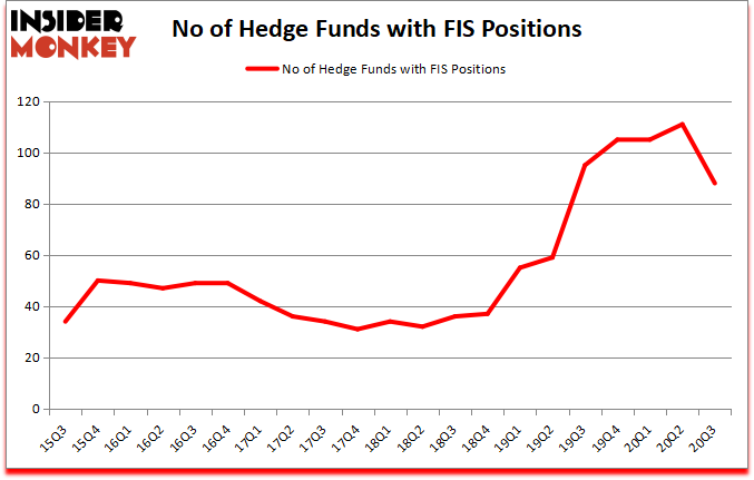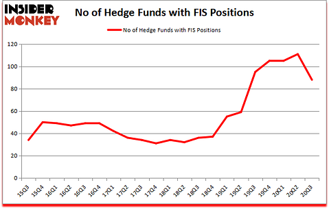 Fidelity National Information Services Inc. (NYSE:FIS) has seen a decrease in hedge fund interest recently. Fidelity National Information Services Inc. (NYSE:FIS) was in 88 hedge funds’ portfolios at the end of September. The all time high for this statistics is 111. Our calculations also showed that FIS ranked 29th among the 30 most popular stocks among hedge funds (click for Q3 rankings and see the video for a quick look at the top 5 stocks).