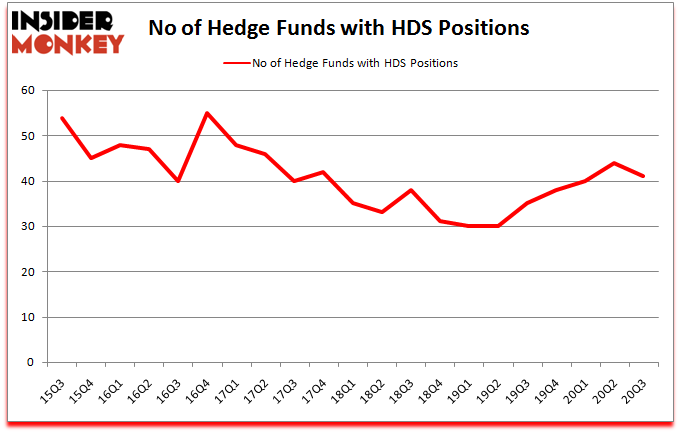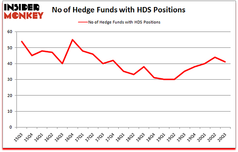 Heading into the fourth quarter of 2020, a total of 41 of the hedge funds tracked by Insider Monkey held long positions in this stock, a change of -7% from the previous quarter. The graph below displays the number of hedge funds with bullish position in HDS over the last 21 quarters. So, let’s examine which hedge funds were among the top holders of the stock and which hedge funds were making big moves.