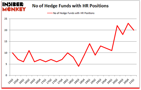 At Q1’s end, a total of 20 of the hedge funds tracked by Insider Monkey were bullish on this stock, a change of -13% from the fourth quarter of 2020. On the other hand, there were a total of 11 hedge funds with a bullish position in HR a year ago. With hedgies’ capital changing hands, there exists a few notable hedge fund managers who were upping their stakes meaningfully (or already accumulated large positions).