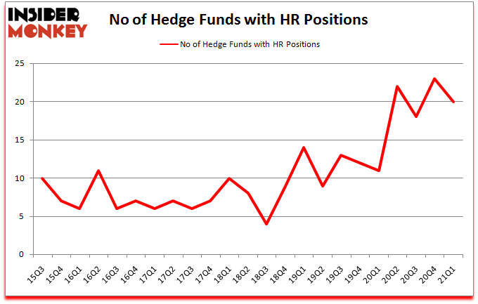 At Q1’s end, a total of 20 of the hedge funds tracked by Insider Monkey were bullish on this stock, a change of -13% from the fourth quarter of 2020. On the other hand, there were a total of 11 hedge funds with a bullish position in HR a year ago. With hedgies’ capital changing hands, there exists a few notable hedge fund managers who were upping their stakes meaningfully (or already accumulated large positions).