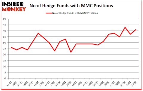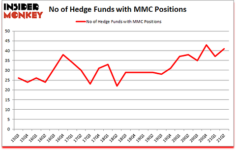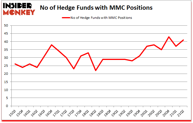 Marsh & McLennan Companies, Inc. (NYSE:MMC) was in 41 hedge funds’ portfolios at the end of the second quarter of 2021. The all time high for this statistic is 43. MMC has experienced an increase in support from the world’s most elite money managers recently. There were 37 hedge funds in our database with MMC holdings at the end of March. Our calculations also showed that MMC isn’t among the 30 most popular stocks among hedge funds (click for Q2 rankings).