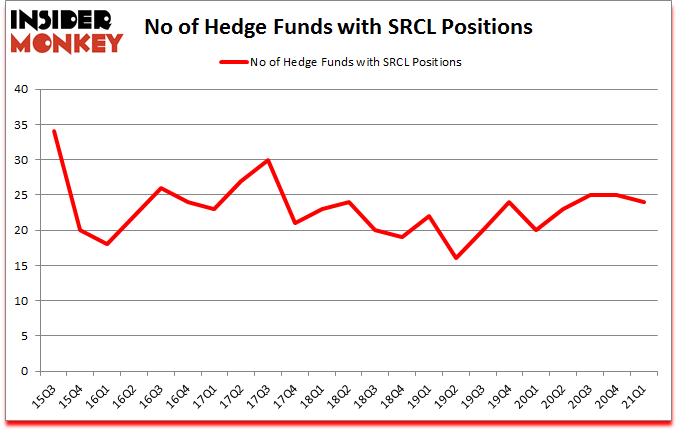 At the end of March, a total of 24 of the hedge funds tracked by Insider Monkey were long this stock, a change of -4% from one quarter earlier. The graph below displays the number of hedge funds with bullish position in SRCL over the last 23 quarters. With hedgies’ capital changing hands, there exists a select group of noteworthy hedge fund managers who were upping their stakes significantly (or already accumulated large positions).