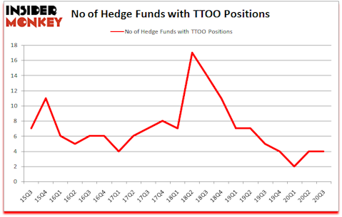 At third quarter’s end, a total of 4 of the hedge funds tracked by Insider Monkey were bullish on this stock, a change of 0% from one quarter earlier. Below, you can check out the change in hedge fund sentiment towards TTOO over the last 21 quarters. So, let’s find out which hedge funds were among the top holders of the stock and which hedge funds were making big moves.