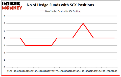 At third quarter’s end, a total of 4 of the hedge funds tracked by Insider Monkey were bullish on this stock, a change of 0% from one quarter earlier. By comparison, 4 hedge funds held shares or bullish call options in SCX a year ago. With hedge funds’ sentiment swirling, there exists a few notable hedge fund managers who were boosting their stakes considerably (or already accumulated large positions).